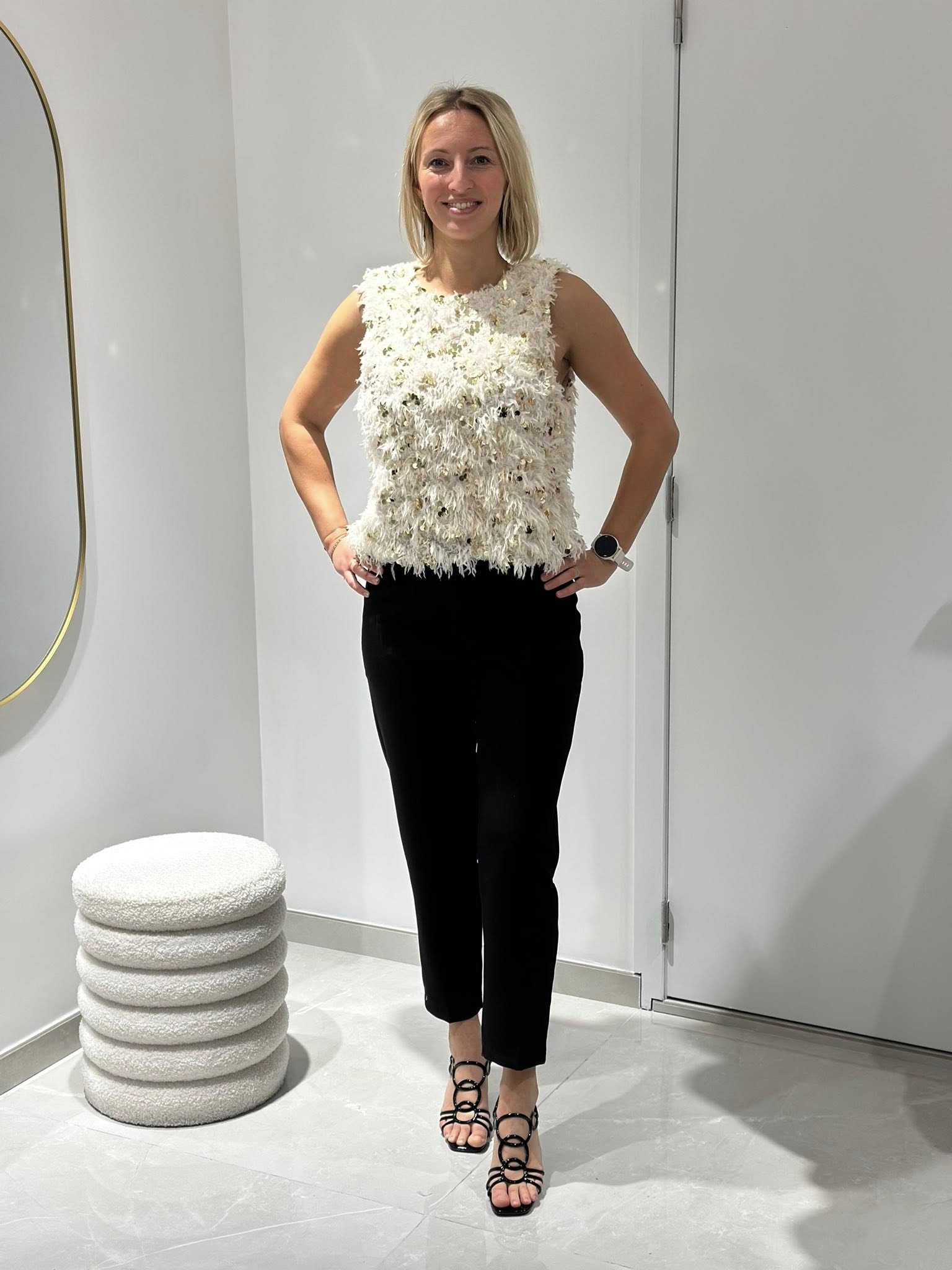 Accueil » Boutique » HAUT PLUMES/SEQUINS BEIGE